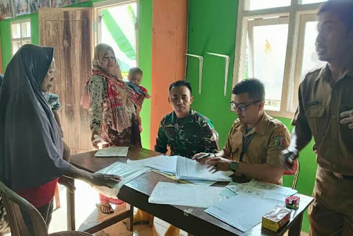 JS- Satgas TNI Manunggal Membangun Desa (TMMD) ke 121 Kodim 0424/Tanggamus bekerjasama dengan Dinas Kepedudukan serta Catatan Sipil Kab. Pingsewu menggelar Pelayanan Administrasi Kependudukan gratis kepada warga di Pekon Fajar Mulya Kec. Pagelaran Utara Kab. Pringsewu. Senin (29/7/24).